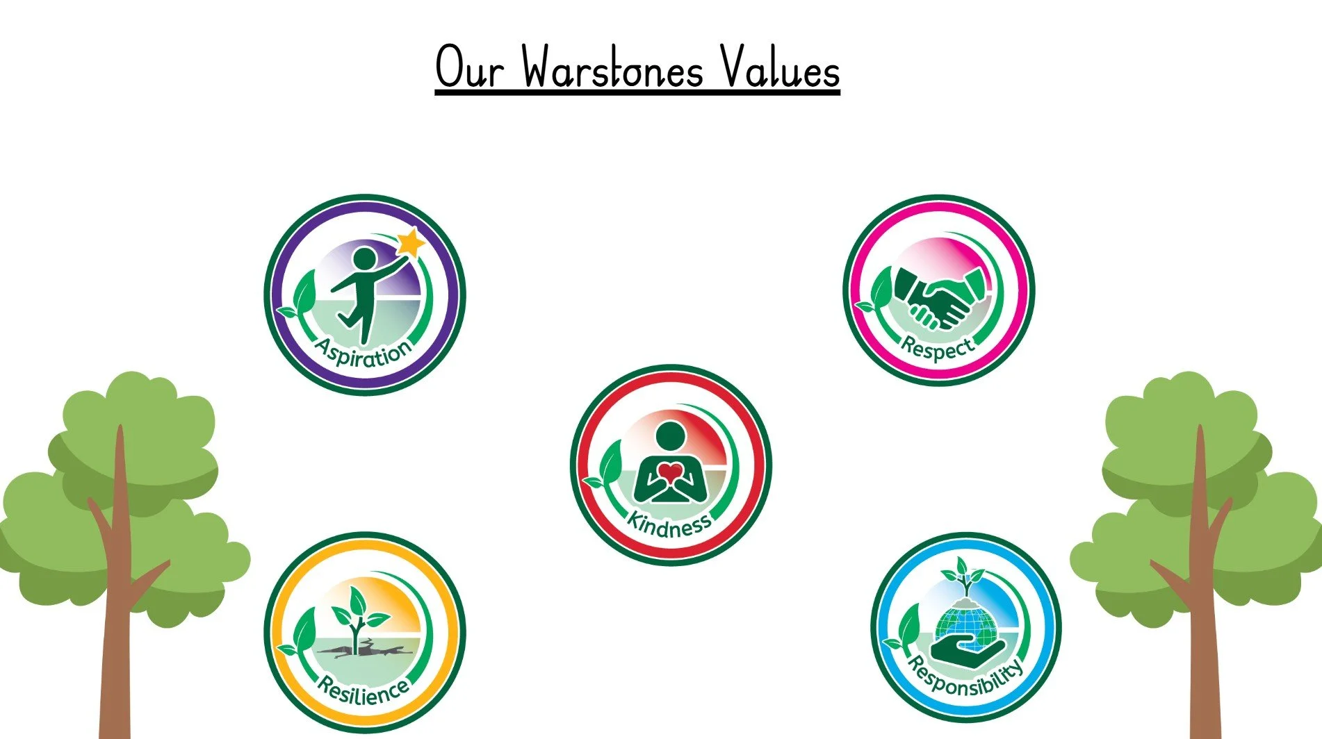 Here at Warstones, we aim for a calm and caring ethos where kindness is at the centre of everything that we do. We try to ensure that our children make the right choices by using our values to support behaviours.